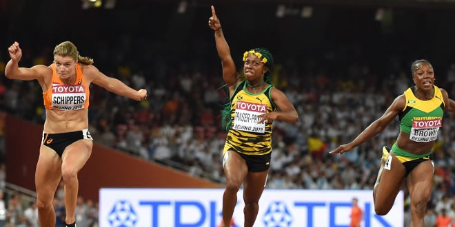 [Vidéo] Mondiaux-2015 - 100 m: la Jamaïcaine Shelly-Ann Fraser-Pryce conserve son titre 24 Aout 2015 Athlétisme O commentaire La Jamaïcaine Shelly-Ann Fraser-Pryce a conservé lundi son titre mondial sur 100 m en 10 sec 76/100e read more >>