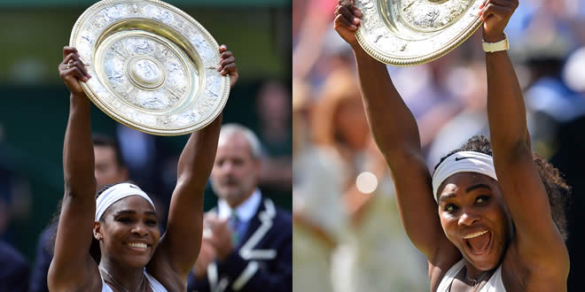 [Diaporama] Wimbledon : Serena Williams remporte son sixième titre à Wimbledon en battant Muguruza 11 Juillet 2015 Tennis O commentaire La N.1 mondiale Serena Williams a remporté samedi son sixième titre à Wimbledon, le 21e en Grand Che read more >>