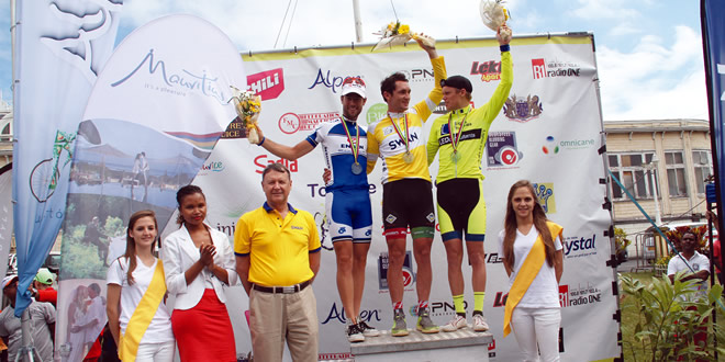 Le grand vainqueur de la 34e édition du Tour de Maurice, qui s’est achevée dimanche, n’est autre que le Sud-Africain Willie Smit. En maillot jaune depuis vendredi, il a su garder le tempo pour passer la ligne d’arrivée  devant le français Sylvain Georges et son compatriote James Tennent. [dropcap]D[/dropcap]ès le départ de l’ultime étape dimanche, ce sont les Sud-Africains qui ont contrôlé les opérations, avec Willie Smit qui suivait dans les roues des leaders. La situation n’a pas changé jusqu’au ‘Fly over’ de Réduit, quand le maillot jaune a pris les choses en main. Le Mauricien Yannick Lincoln a porté son attaque au 6e tour du circuit entre Ébèbe et le Plaza, à Rose-Hill. Il a tout tenté, mais ses attaques ont été neutralisées. À la descente du parc de santé de Vandermeersh, Smit a creusé l’écart. Malgré un forcing de Lincoln, six fois vainqueur du Tour, dont les quatre dernières éditions, Smit a gardé la cadence sur toute la route royale de Beau-Bassin pour finalement s’imposer devant Lincoln et Sylvain Georges. C’est dans une ambiance festive que s’est déroulée la remise des prix, en la présence du vice-Premier ministre et ministre des Services Publiques, Ivan Collendavelloo, du ministre de la Jeunesse et des Sports, Yogida Sawmynaden, et du maire de Beau Bassin/Rose-Hill, Ken Fong. [divider style="dotted" top="20" bottom="20"]